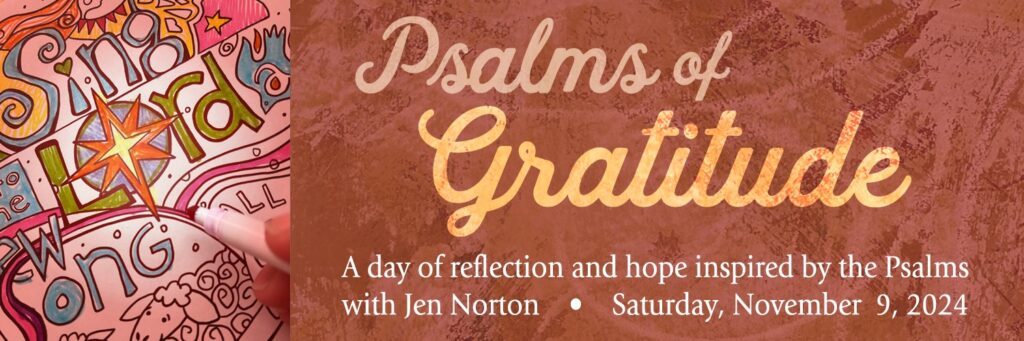From our own lives and circumstances, we will craft a personalized psalm to inspire us to gratitude in the days ahead. You will have the chance to create a unique piece of art crafted from your own words to ponder and pray through the final weeks of the year.